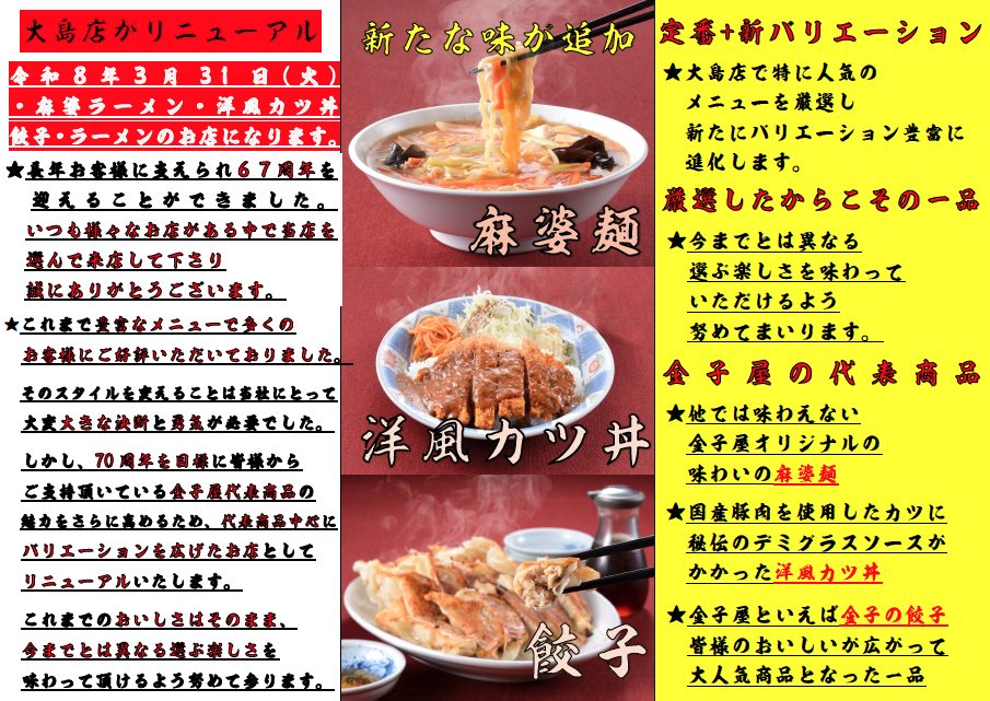 令和8年3月31日(火) 大島店がリニューアル